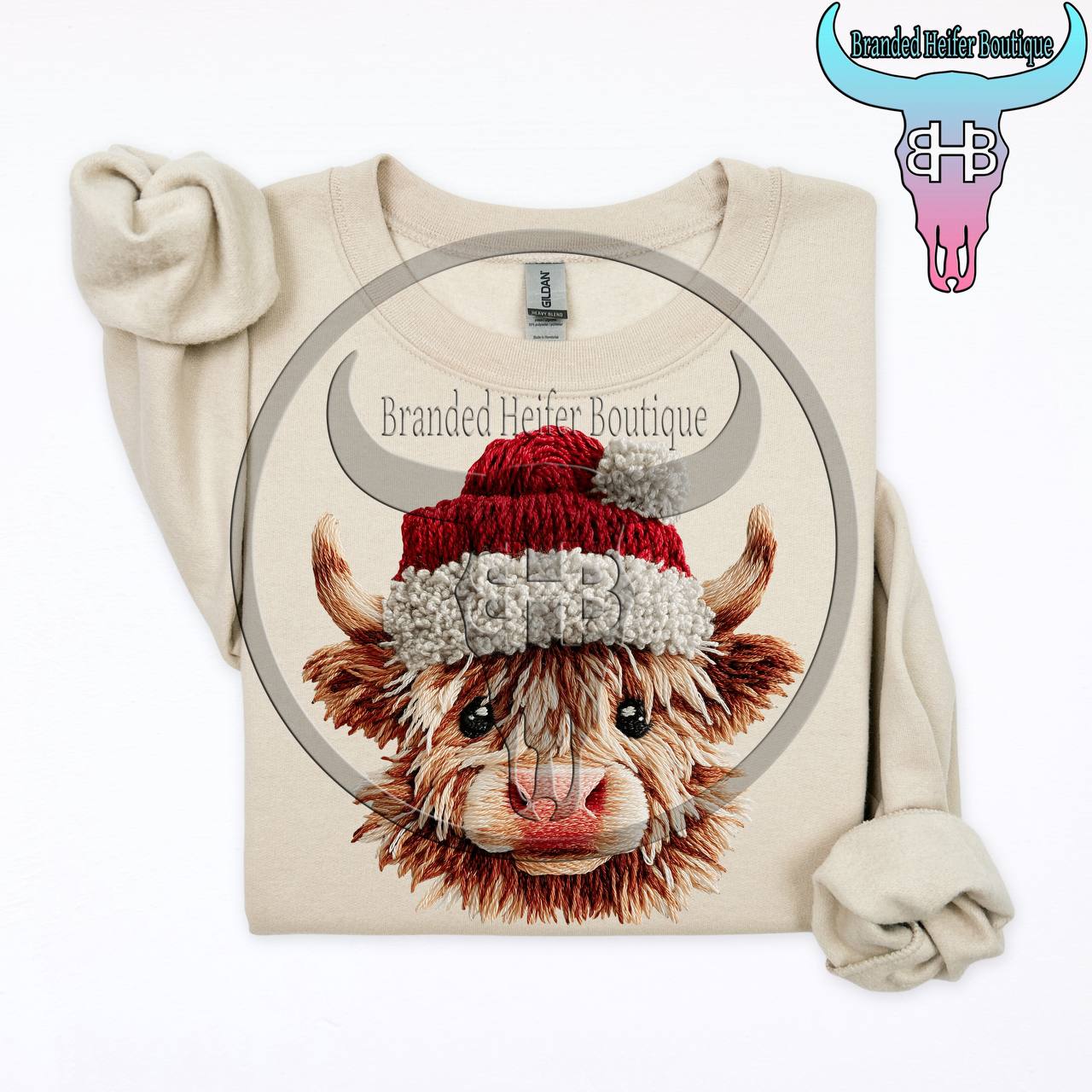Cozy up Western-style this season with our Merry Heifer Christmas Crewneck! Featuring the cutest Highland cow rocking a Santa hat, this design delivers just the right mix of festive and farm life. Soft, warm, and built for comfort, it’s your new favorite crew for chilly nights, Christmas parades, or lounging by the fire with cocoa in hand.